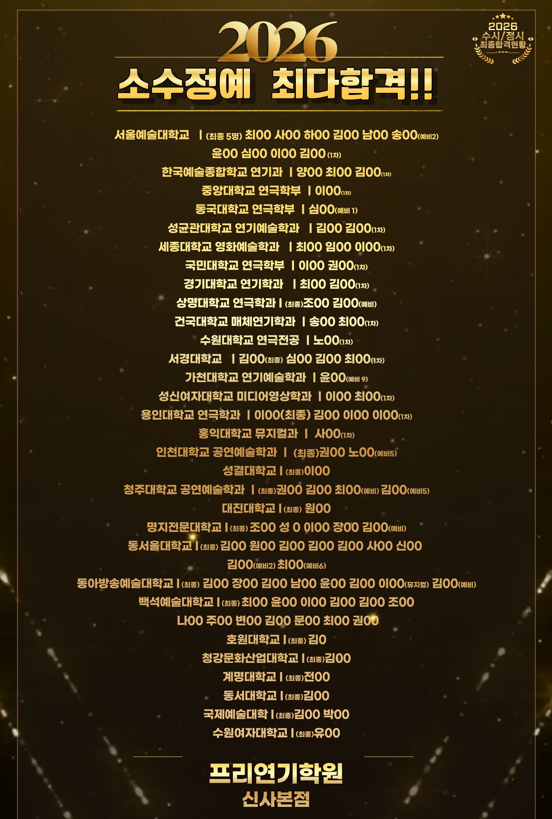2025학년도 프리연기학원 최종 합격현황! 수시 정시 총 28명이 만들어낸 합격!